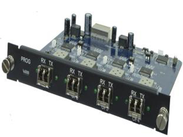 VINIAV 4路光纤输出卡out-OTF4,支持4通道多模双芯10G信号输入,LC型光纤,传输距离300m,配合数字高清混插矩阵主机使用,采用独立板卡设计,低成本、高性能的灵活应用,支持1920×1200@60Hz的数字高清图像传输。
